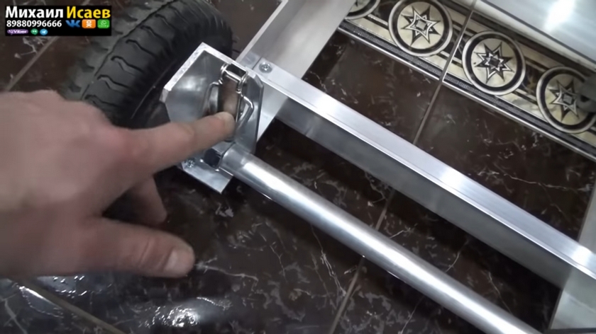 Колесная база с 20 мм шпилькой и осью 20 мм, обеспечивает устойчивость конструкции. За счет особенности конструкции колесной базы, стол выдерживает нагрузку до 250 кг. Колеса оснащены пластиковым фиксатором.