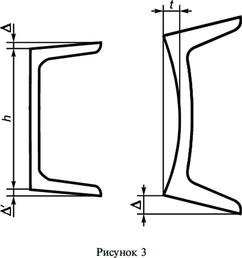 - высота полки балки, полученной горячей прокаткой, не должна отличаться от стандартного уровня больше, чем на 3 мм;