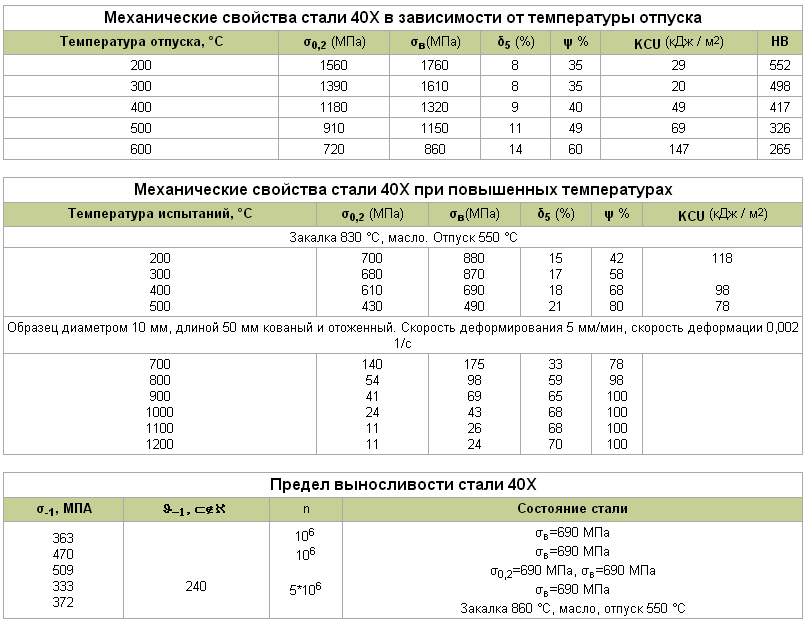 Механические свойства стали 40Х в зависимости от температуры отпуска
