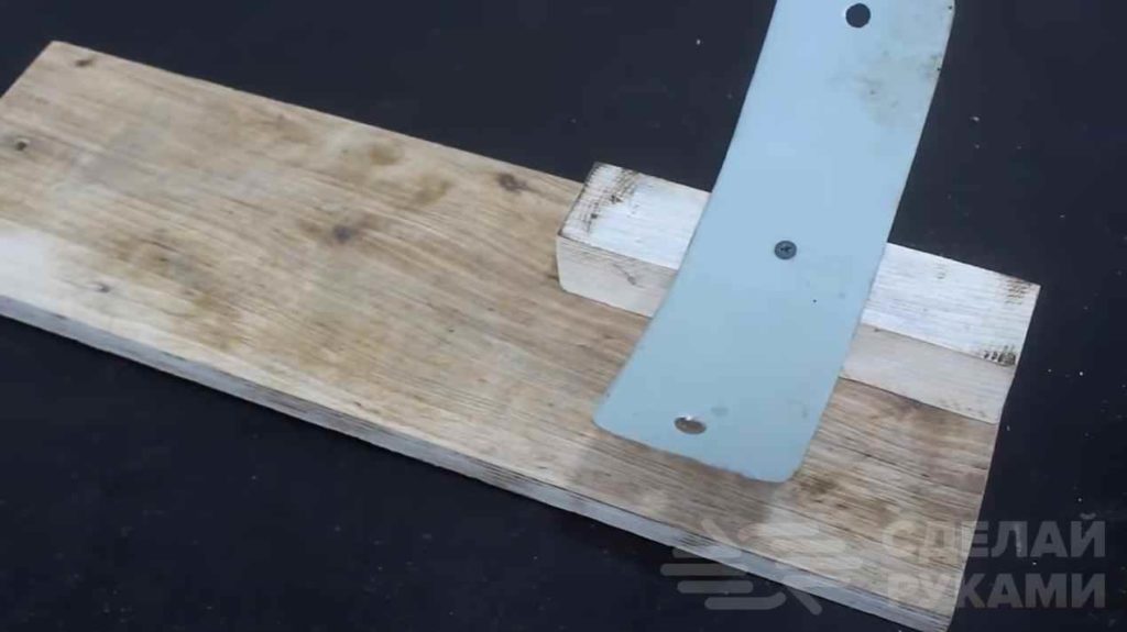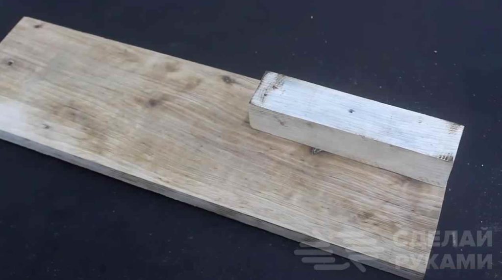 Прикручиваем к основанию отпиленный по размеру деревянный брусок, расположив его с края.