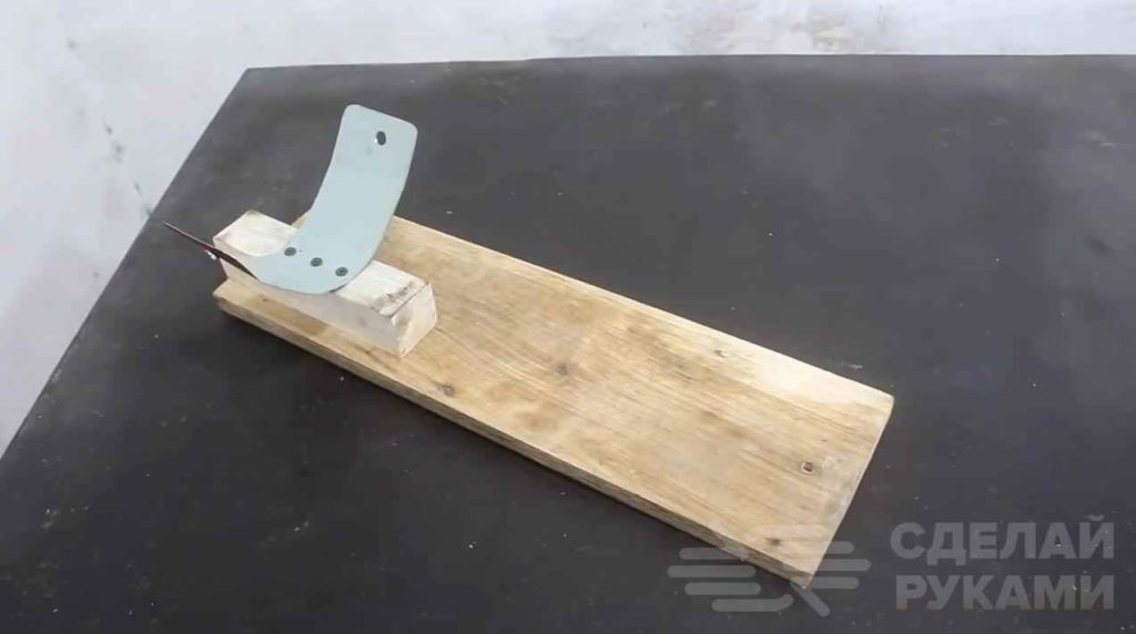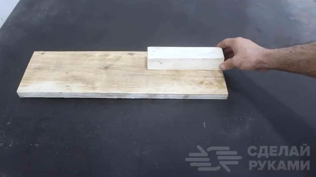 Для начала необходимо будет сделать основание конструкции. Подойдет кусок фанеры или ДСП. Автор использует простой кусок доски.