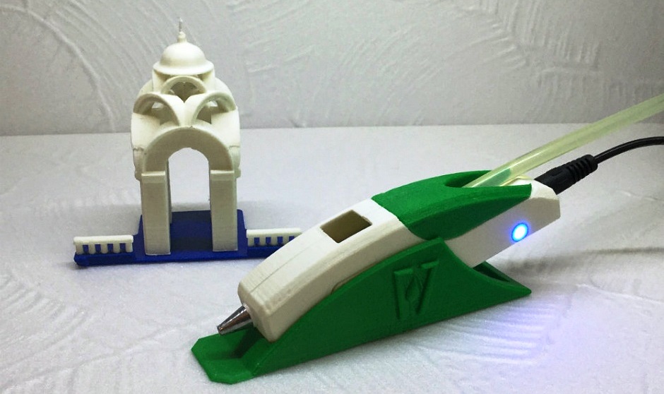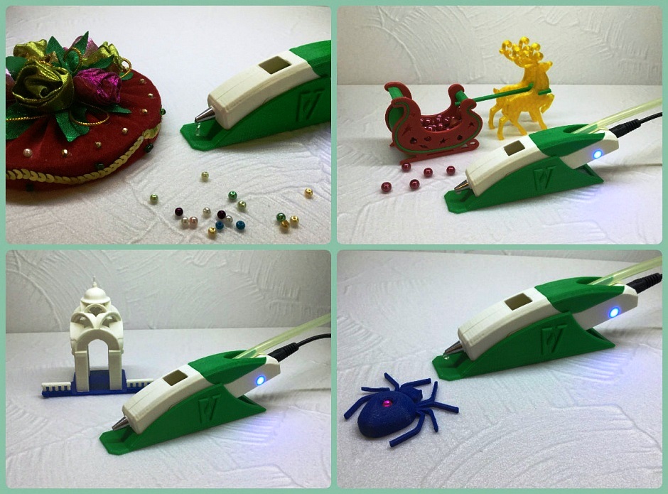 Опыт применения 3д ручки подсказал вариант корпуса. В результате получилось устройство, которое я назвала GlueDart. Это клеевой пистолет в виде ручки с электрическим экструдером для 7 мм стержней.