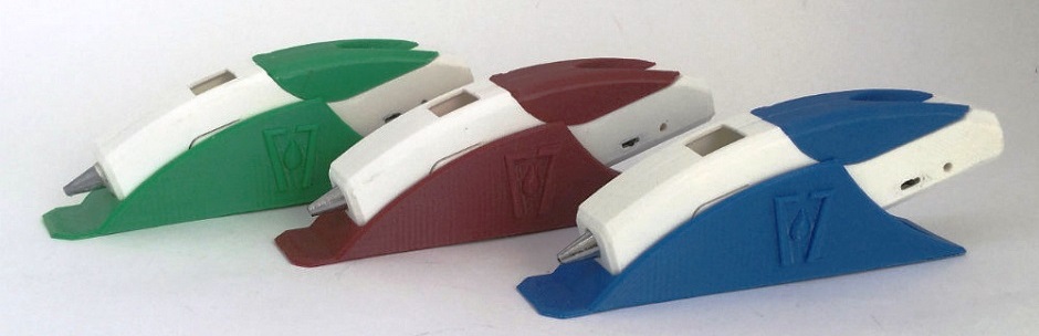 Опыт применения 3д ручки подсказал вариант корпуса. В результате получилось устройство, которое я назвала GlueDart. Это клеевой пистолет в виде ручки с электрическим экструдером для 7 мм стержней.