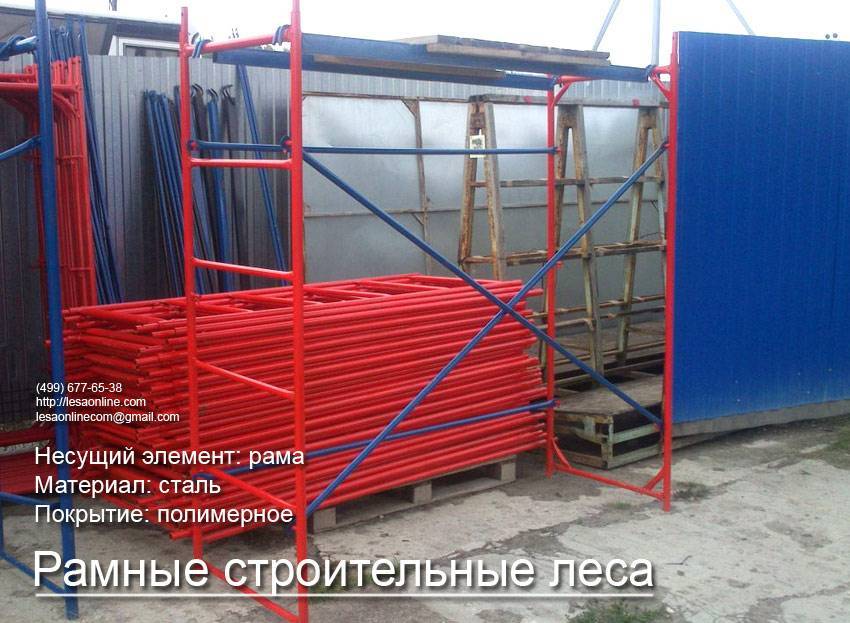 Сборная открытая конструкция обеспечивает отличный обзор обрабатываемой поверхности, вы сможете проследить за качеством работ со стороны. Еще благодаря такой конфигурации обеспечивается максимальный доступ света и воздуха. Несмотря на всю громоздкость, рамные леса имеют минимальный вес благодаря полым трубам, из которых собираются рамы. При всем обилии плюсов это еще и самый бюджетный вариант.
