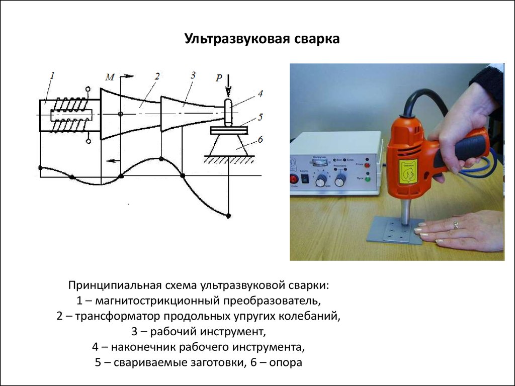 Такой вид сварки проводится преобразователем ультразвуковых волн в механические колебания в сочетании с небольшим давлением. При воздействии на поверхность сначала за счет сухого трения разрушается оксидная пленка, затем плавится материал. Поэтому нет необходимости в тщательной подготовке стыка. Для повышения прочности шва детали предварительно подогревают.