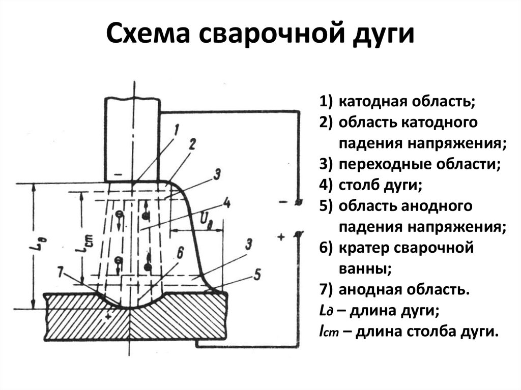 Источником нагрева соединения является сварочная дуга – концентрированная лучистая энергия в промежутке между электродом и изделием. Питание происходит от трансформатора при переменном токе или преобразователя – при постоянном. От источника питание подаётся проводами на электрод, зажатый в держателе, и на изделие. При контакте между ними возникает дуга. Шов образуется от расплавления электрода и соединяемой кромки.