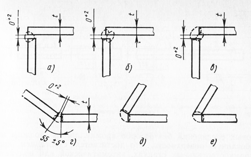 | 4 | Угловой | Поверхности соединяемых узлов наклонены по отношению друг к другу (угол соприкосновения кромок — более 300), сварку проводят по торцам изделий. | У |