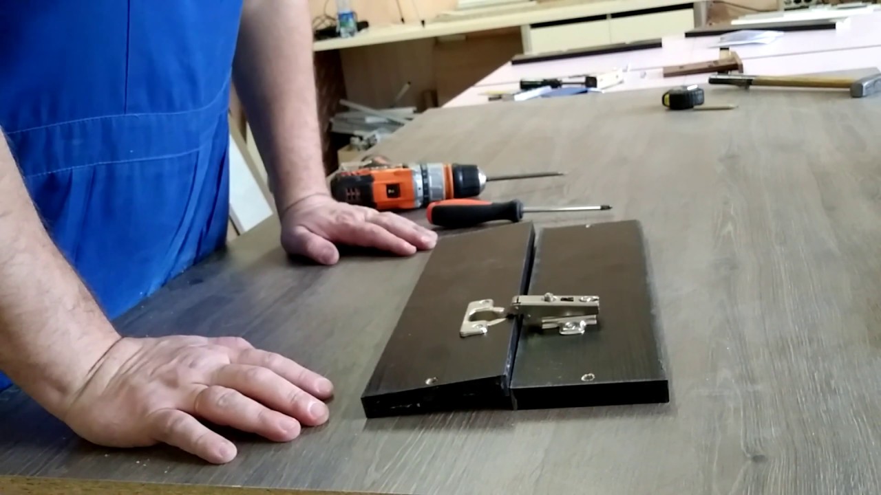 Когда выполнена разметка и установка мебельной петли, наступает самый сложный этап крепление устанавливаемой дверцы к корпусу шкафчика. Ход навешивания дверцы: