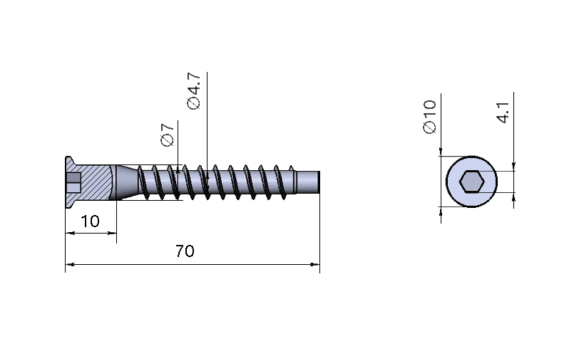 - Для резьбовой части конфирмата диаметр должен составлять 5 миллиметров, а диаметр отверстия для самой головки уже 7 миллиметров;