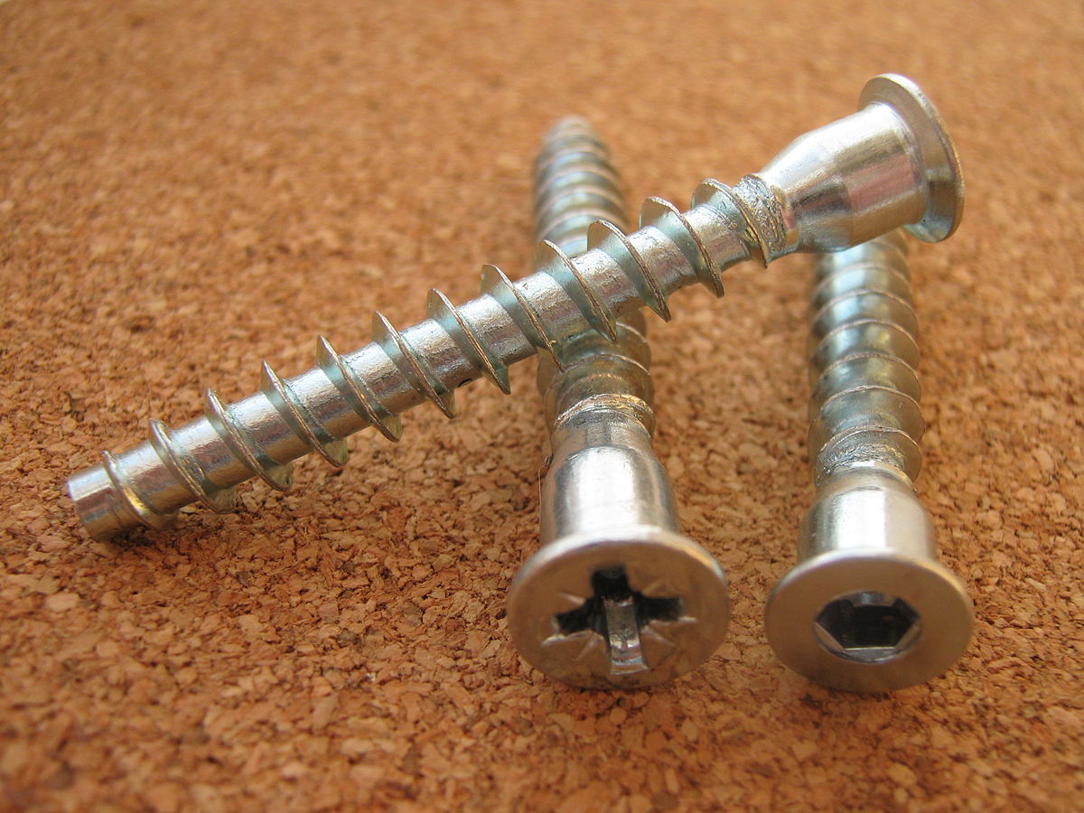 Наиболее востребованным и распространенным считается еврометиз с плоской головкой под шестигранник, для монтажа которого применяется специальный ключ с шестью гранями или бита для шуруповерта, обеспечивающие надежную затяжку винта в плоскости древесной мебельной плиты.