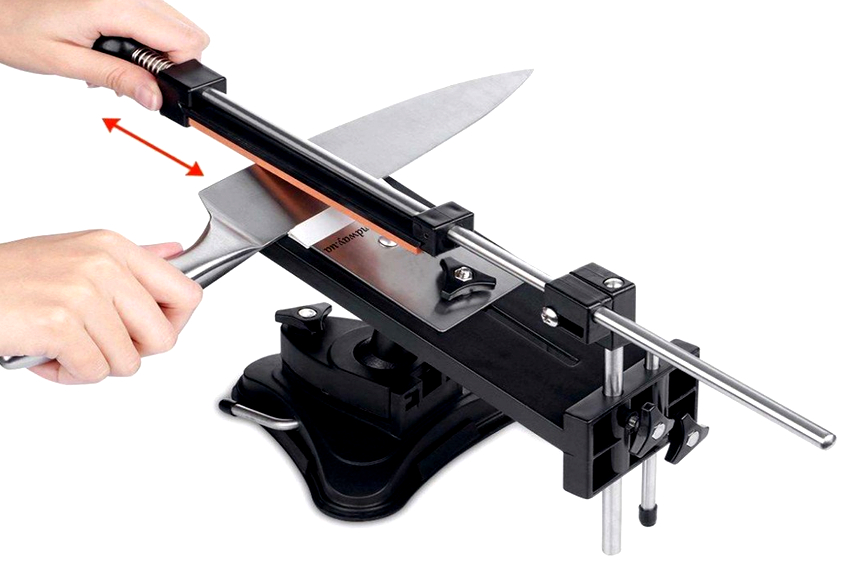 Станки для затачивания ножей с фиксирующимися лезвиями привлекут к себе внимание тех людей, которые хотят наточить нож не только качественно, но и быстро. Конструкция, жёстко фиксирующая лезвие ножа относительно движущегося под установленным углом точильного камня, позволяет точно выставить угол наклона
