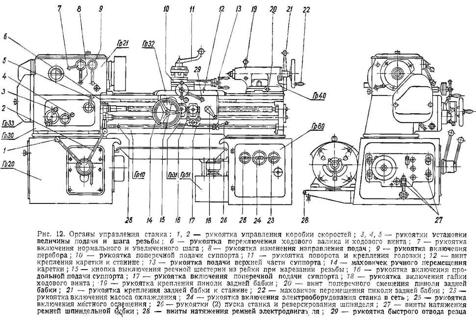 Основным отличием от винторезных станков 16К20 является обработка изделий меньшего размера и отсутствие ускоренного перемещения.