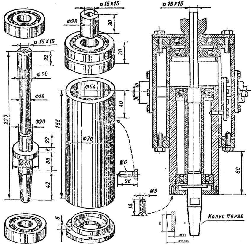 Чертежи основных узлов самодельного токарного станка из дрели (нажмите, чтобы увеличить)