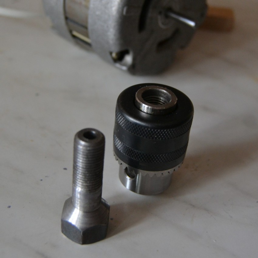 Привод электрической дрели или перфоратора используется для обеспечения вращения обрабатываемой заготовки, а патрон инструмента позволяет жестко ее закрепить.