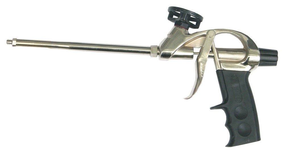 - Пистолет, заправленный герметиком или монтажной пеной – очень удобен при нанесении герметизирующих средств;