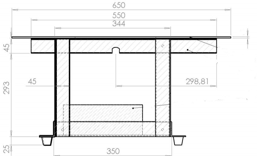 Станина выполняется из регулируемых опор, металлического уголка и стоек от старой кровати. Рабочая поверхность — металлический лист как поверхность стола, в котором прорезаем отверстие, края своими руками обрабатываем напильником.