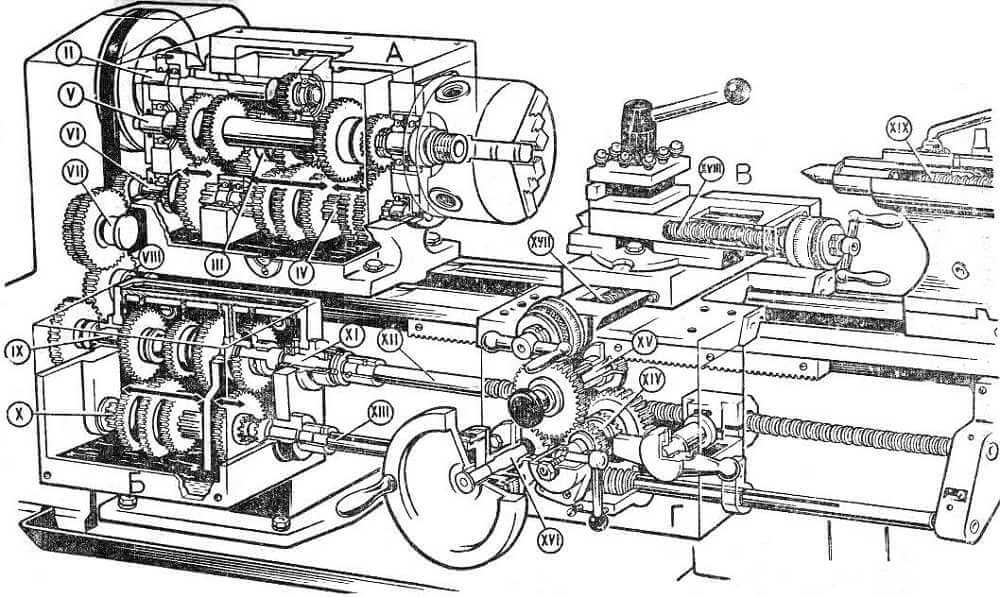 ТВ 6 токарный станок заключает в себе следующее части: