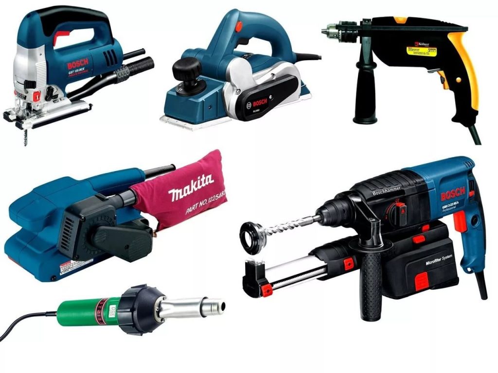 Циркулярка, шуруповёрт, торцовочная пила, перфоратор, электрофрезер.