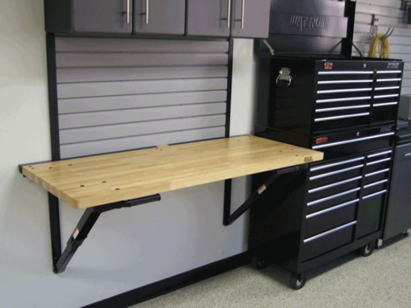 В зависимости от конструкции рабочий стол в гараж может быть: