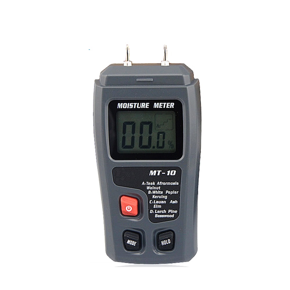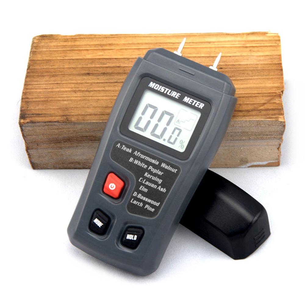 Можно выделить два вида устройства: игольчатый и бесконтактный. Первый отличается тем, что имеет две металлические иглы, которые следует погрузить в древесину под прямым углом. Они участвуют в создании электрического напряжения между материалом и прибором. Результат сразу высвечивается на экране, сверившись с таблицей, мы имеем готовые данные. Удобный и недорогой прибор.