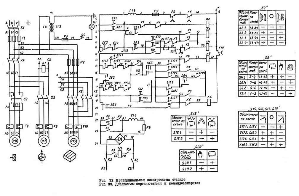 Обратите внимание! Схемы коммутации узлов станочного оборудования приводятся в таблицах. Руководствуясь ими, можно будет выбрать требуемый режим работы