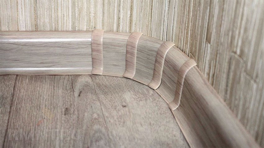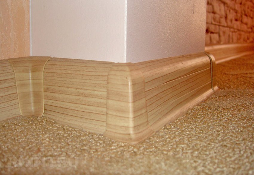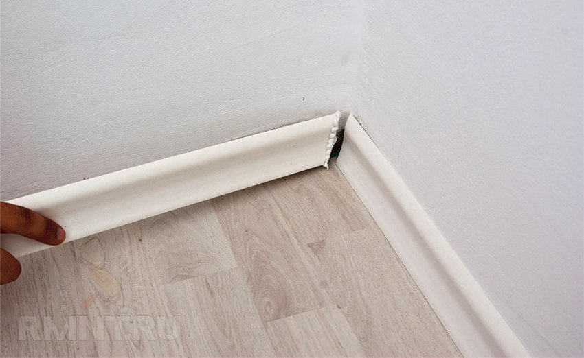 Приложите багеты друг к другу, при необходимости сделайте подрезы в местах стыковок основания. Если все в порядке, плинтусы можно зафиксировать на клей или прикрутить к стенам с дальнейшей герметизацией швов.
