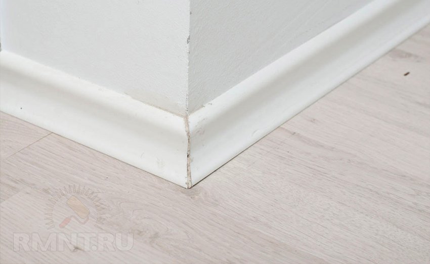 Поклейка плинтусов выполняется строго после окончания работ по шпаклевке стен и потолков.