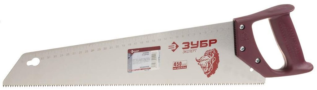 - ЭКСПЕРТ 15071-45: пила поперечная, длина полотна — 45 см, шаг зубьев — 3,5, масса — 0,34 кг.