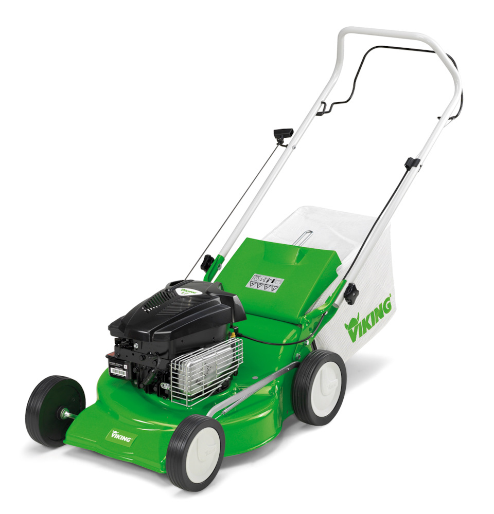 Oleo-Mac G 44 PK Comfort Plus. Модель газонокосилки со стальным корпусом и шириной кошения 41 см подходит для обработки участков до 1000 м2. Можно использовать задний выброс травы или сбор в специальный контейнер на 70 л. Техника несамоходная, оснащена удобной складной рукояткой, положение которой можно регулировать. Диапазон высоты стрижки 28-75 мм, центральной регулировки нет.